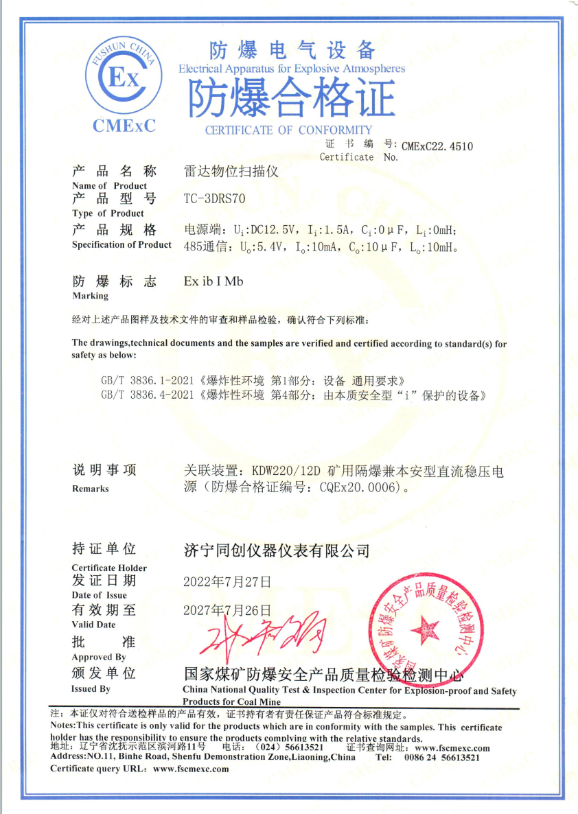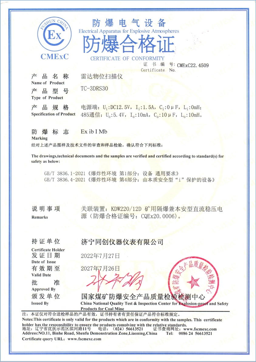 山東同創(chuàng)儀表有限公司主營儀表:調(diào)頻連續(xù)波雷達物位儀、本安型超聲波液位計、隔爆兼本安型電磁流量計、隔爆兼本安型超聲波流量計、本安型電磁流量計。